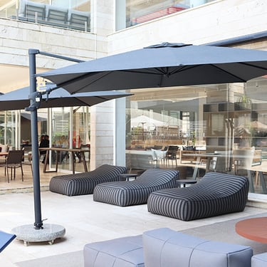 O versátil ombrelone AG15 é a escolha para completar seu ambiente. Possui inclinação frontal e lateral da cobertura e pedal giratório que permite 360º de rotação. Seu sistema de abertura, fechamento e inclinação lateral é realizado através de algumas voltas da manivela, para a inclinação frontal, basta deslizar o guia no mastro do ombrelone e escolher a posição desejada. Com rapidez e leveza você direciona a sombra do seu ombrelone para onde desejar, protegendo-se dos raios solares.