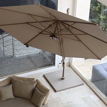 Peso do ombrelone (sem a base): 36kg para o 3,00x3,00m | 27kg para o ø3,30m