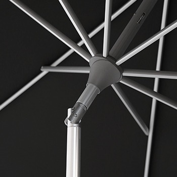 Este ombrelone tem tudo: facilidade de utilização, tecnologia e design. Com sua manivela, é muito fácil abrir e fechar a cobertura do ombrelone, que pode se inclinar de forma progressiva por meio de um mecanismo de rotação. O tecido é intercambiável e autotensionável, graças às extremidades flexíveis dos braços. Os materiais anticorrosivos garantem uma longa vida útil: a estrutura e varetas são de alumínio. Com design originalidade, a marca suíça Glatz garante um produto de grande durabilidade e inovador, prezando a eficiência e facilidade no manuseio.