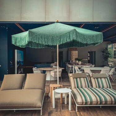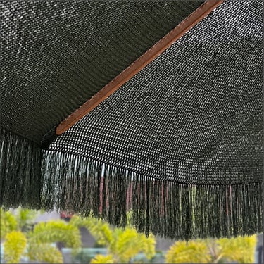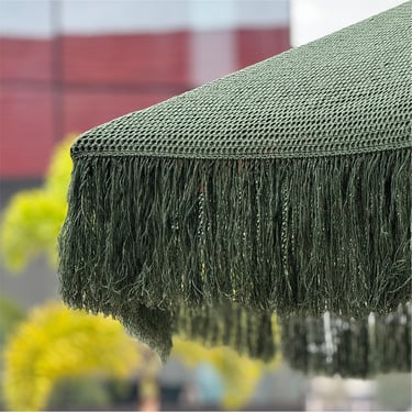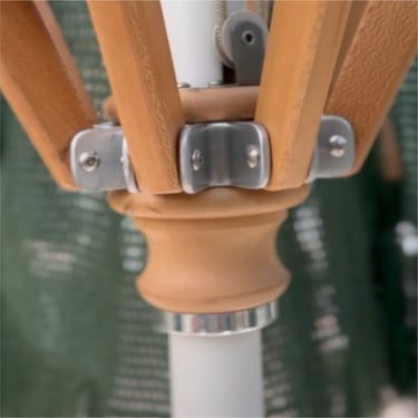 Este ombrelone de haste central traz a combinação perfeita do alumínio com a madeira e sua cobertura em tricô, dando a esta peça um aspecto único, misturando o rústico ao contemporâneo. Cobertura produzida de forma totalmente artesanal por tricoteiras tradicionais do interior de Minas Gerais, tornando o produto ainda mais exclusivo, sendo único em cada detalhe. A cobertura abre e fecha através de um sistema de polia com corda, e travamento com pino na haste central.
