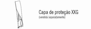 Cobertura Padrão: Tecido Olefin - derivado do etileno e polipropileno com gramatura de apróx. 200g/m², com tratamento repelente a água e proteção solar UPF50+
