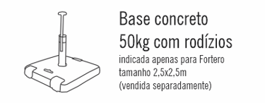 Peso mínimo para base: 50kg para o 2,50x2,50m | 90kg para o 3,50x3,50m e ø4,00m