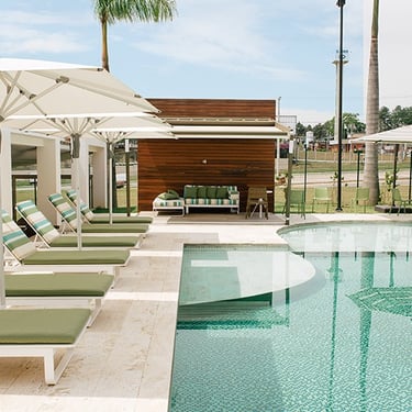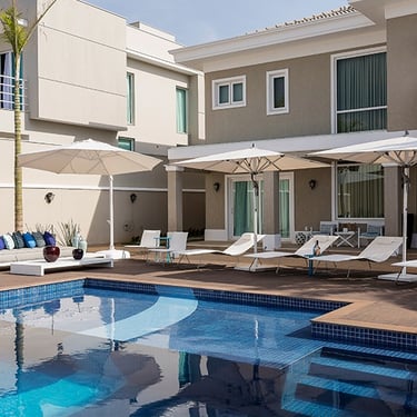 Cobertura Padrão: Tecido Olefin - derivado do etileno e polipropileno com gramatura de apróx. 200g/m², com tratamento repelente a água e proteção solar UPF50+