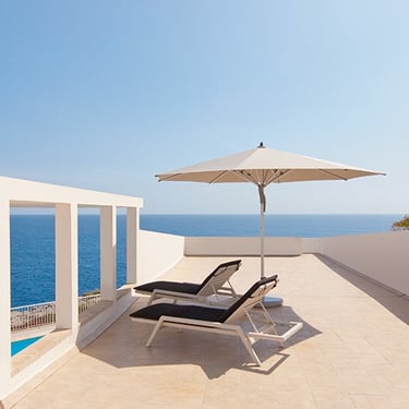 Peso do ombrelone (sem a base): 17kg para o 3,50x3,50m e ø4,00m | 12,50kg para o 2,50x2,50m