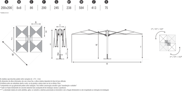 Tamanho da cobertura: 4 coberturas de 2x2m