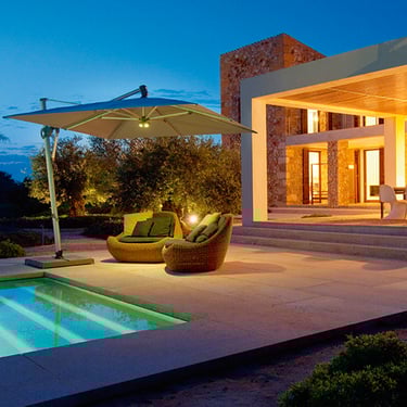 Por suas dimensões, é ideal para grandes áreas e pode ser utilizado para cobrir mesas de jantar, conjuntos de sofás e espreguiçadeiras ou projetar sombra em piscinas. Hotéis, bares e restaurantes podem combinar peças lado a lado ou outras disposições para criar ambientações modernas e ampliar as possibilidades de atendimento e serviço ao ar livre. Com design e originalidade, a marca suíça Glatz garante um produto de grande durabilidade e inovador, prezando a eficiência e facilidade no manuseio.