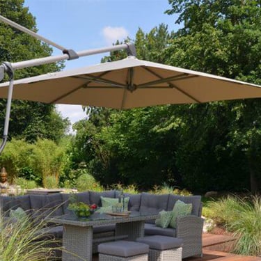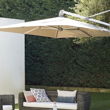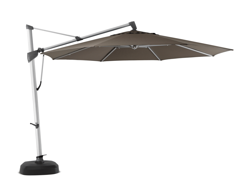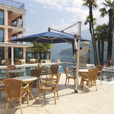Este modelo permite 360° de sombra com manuseio simples, além da modernidade e design marcante. O ombrelone Sombrano abre e fecha por meio da ação de uma manivela; a cobertura se inclina 54° dos dois lados em passos de 18°, e pode girar 360° graças ao pedal giratório.