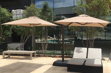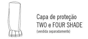 Versatilidade, a palavra que define o ombrelone Two Shade composto por duas coberturas quadradas de tamanho 2x2m, possui articulação da cobertura através de uma manopla com movimentação de até 180º sob o mastro. Esse diferencial de movimentação da cobertura, permite que se crie dois modelos de layouts, sendo paralelo e lado a lado. Estrutura em alumínio com pintura eletrostática e cobertura com proteção solar UPF50+. Fácil de montar e manusear, ideal para ambientes corporativos e residenciais.