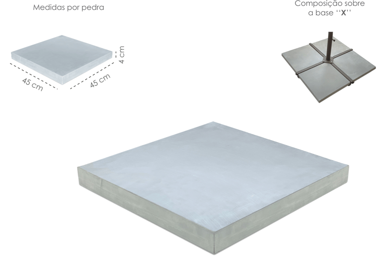 Base em ardósia, ideal para ombrelones de médio e grande porte com pés do tipo "X", em locais com incidências de ventos de até 30km/h.