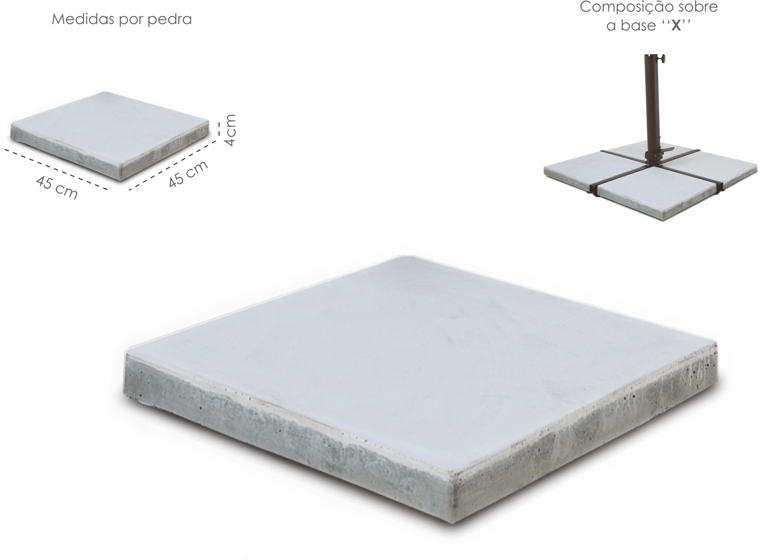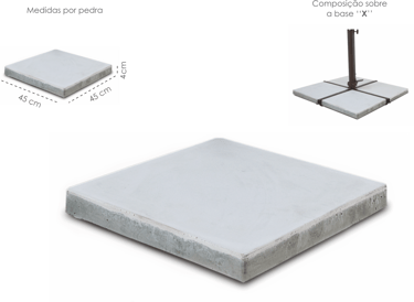 Obs.: Vendida em caixa com 2 pedras. Para compor uma base são necessárias 4 pedras sobrepostas sobre o “X” do ombrelone.